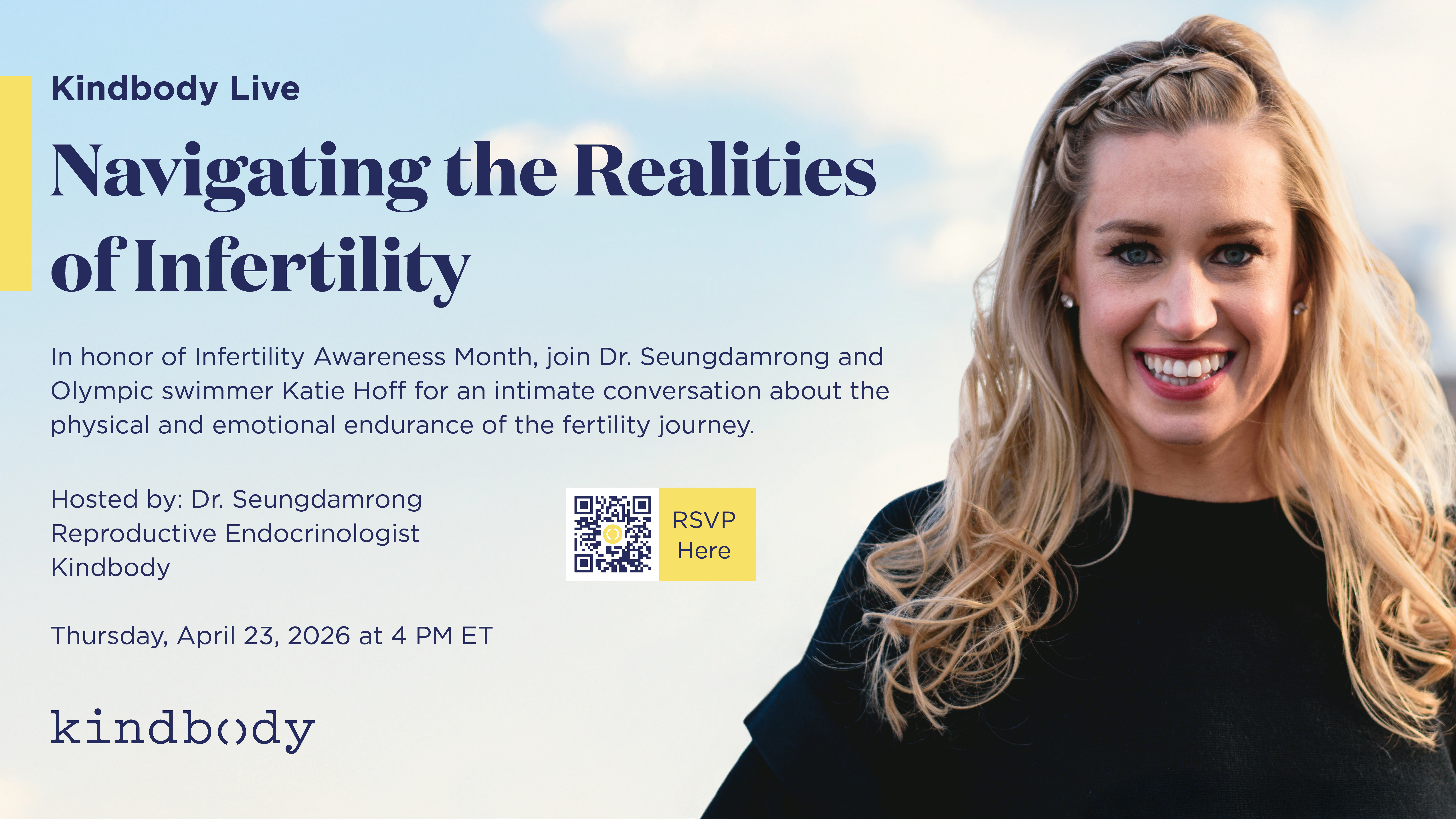 Kindbody Live: Navigating the Realities of Infertility Thursday, April 23, 2026 at 4 PM ET This May, in honor of Mental Health Awareness Month, we’re centering the conversation on emotional well-being across the full spectrum of reproductive health.
