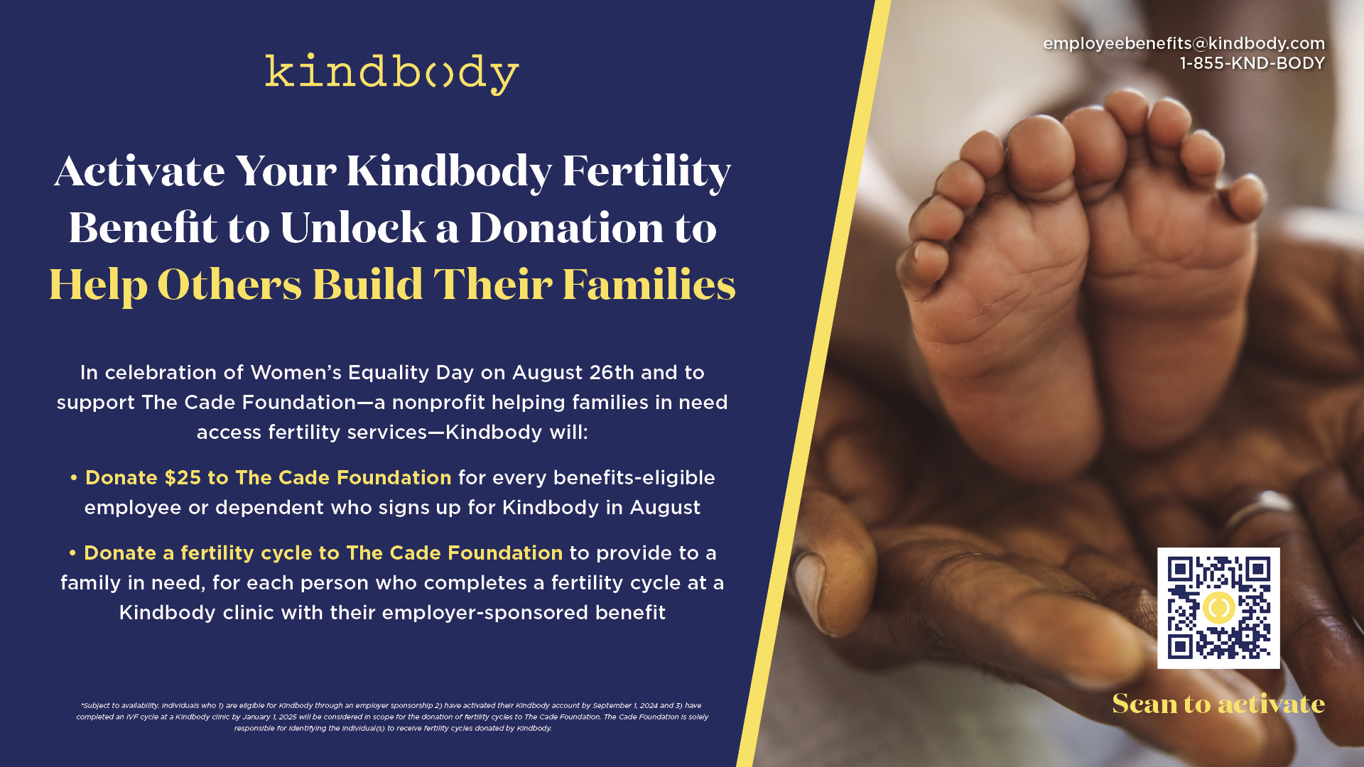 In August Kindbody is supporting The Cade Foundation with a $25 donation for every employee member who activates a new account. We’ll also be hosting virtual events to spark discussion around Women's Equality Month, breastfeeding, and fertility education. Download August Toolkit Built For This: Leveraging Science to Support Our Bodies
