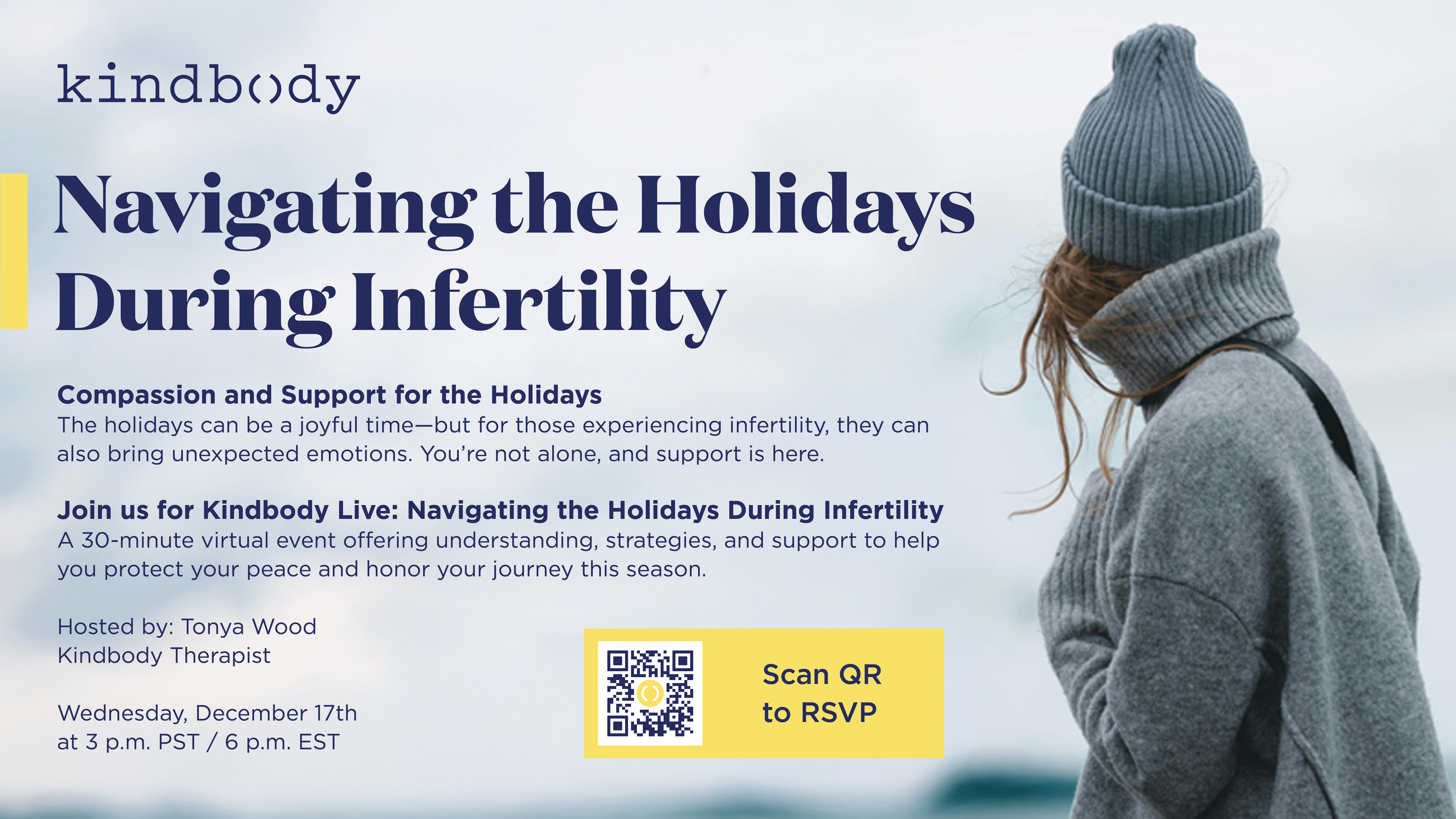 RSVP Join our free virtual events, designed to spark discussion around navigating a fertility journey during the holidays, and taking care of the whole you.