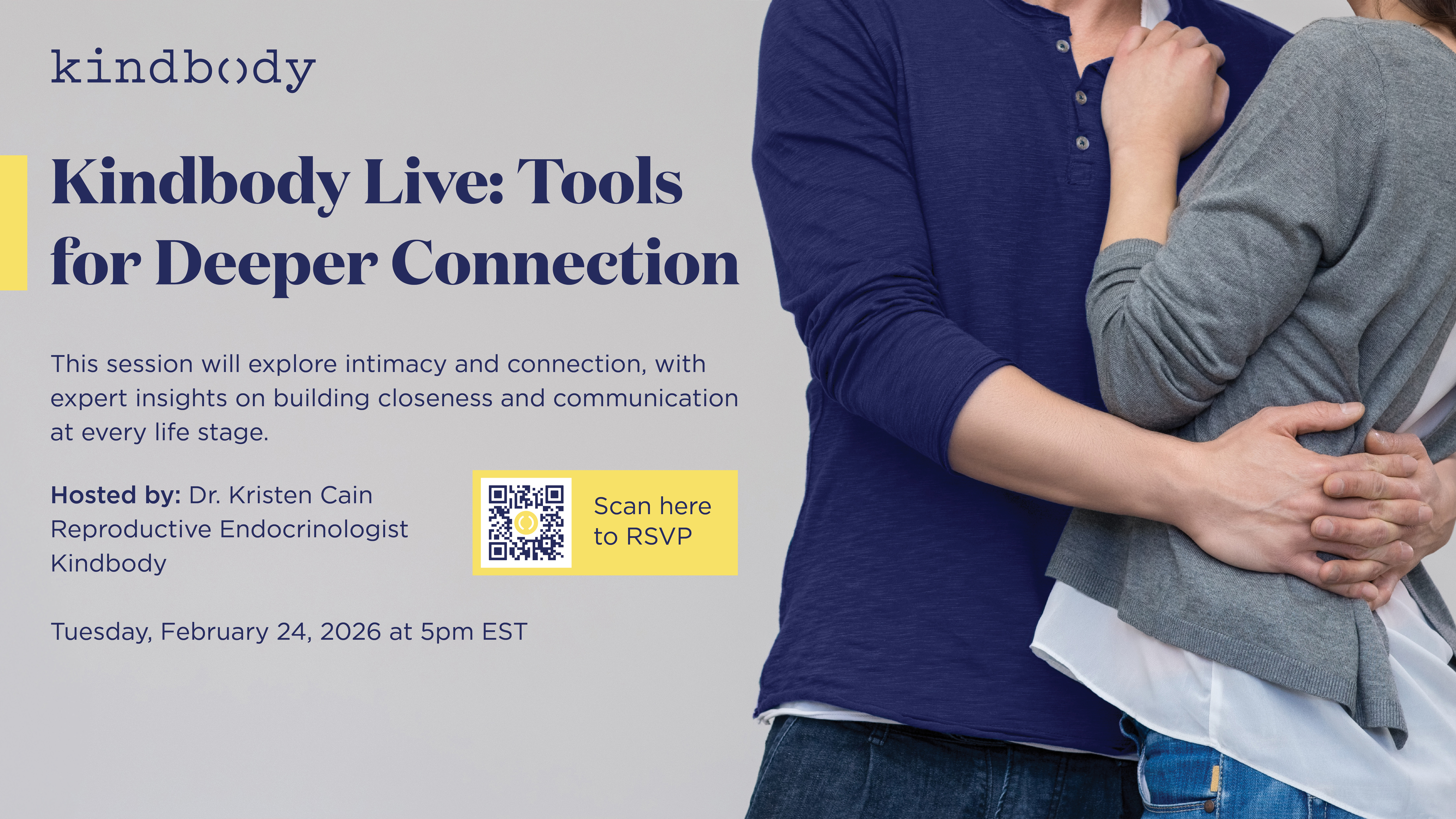 Access short articles to help promote Kindbody benefits through your internal communication channels. Invite your teams to our national webinar in your internal communications. Kindbody Live: Tools for Deeper Connection Tuesday, February 24, 2026 at 5pm EST In March, we will explore identity and parenthood. Dr. Cooper shares her story and insights on family planning, wellness, and the choices women navigate.