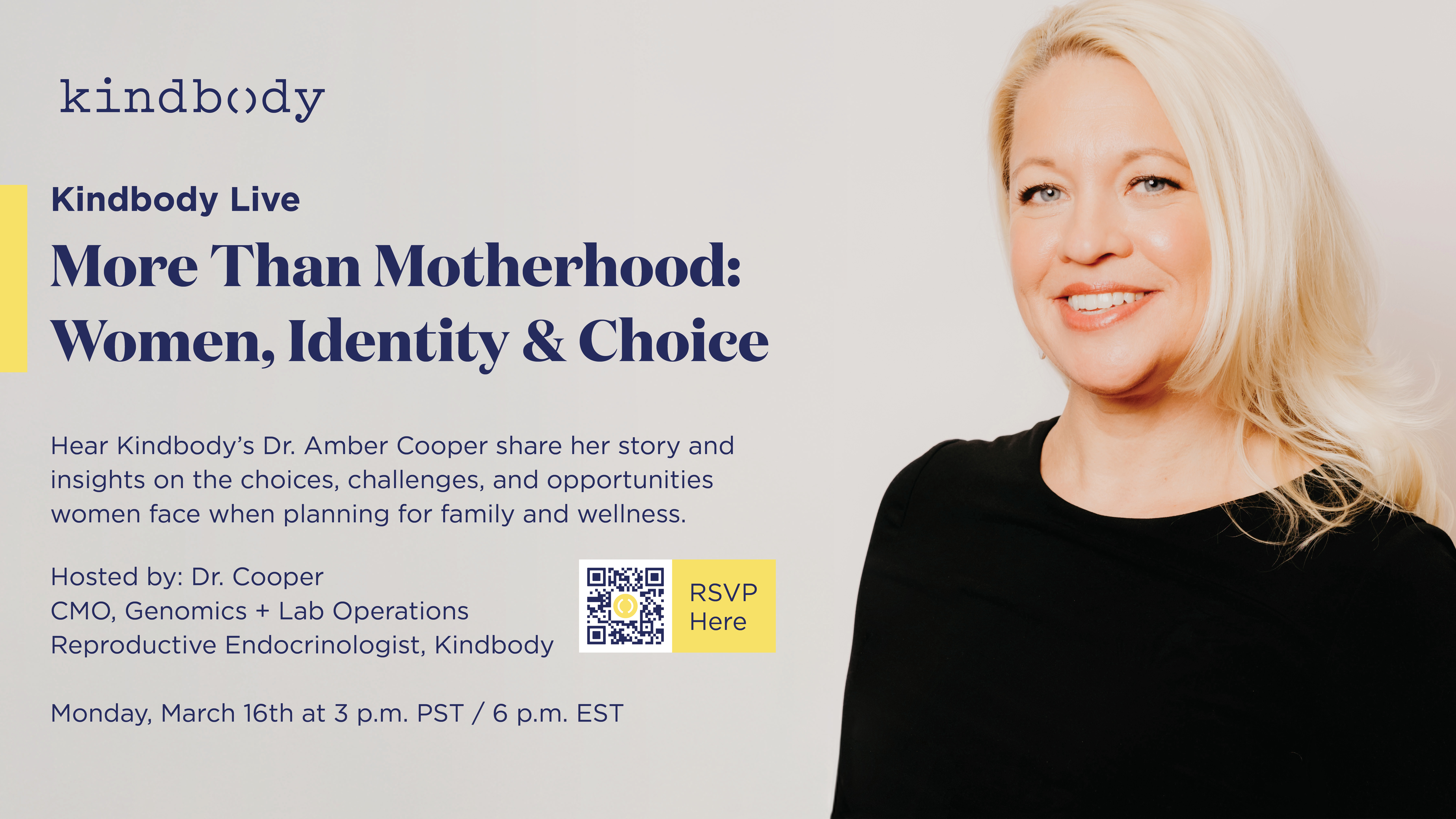 Access short articles to help promote Kindbody benefits through your internal communication channels. Invite your teams to our national webinar in your internal communications. Kindbody Live: More Than Motherhood: Women, Identity & Choice Monday March 16th 2026, at 6pm EST